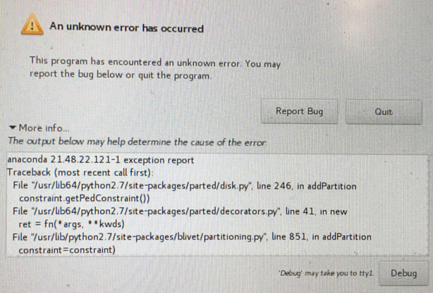 "An unknown error has occured" during installation
